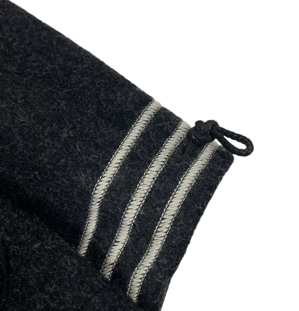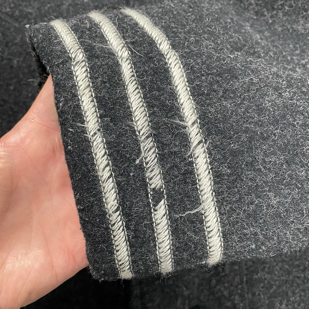 From autumn winter 2003, 70% Wool, 30% Nylon. Heavyweight warm coat with iconic stripe to cuffs